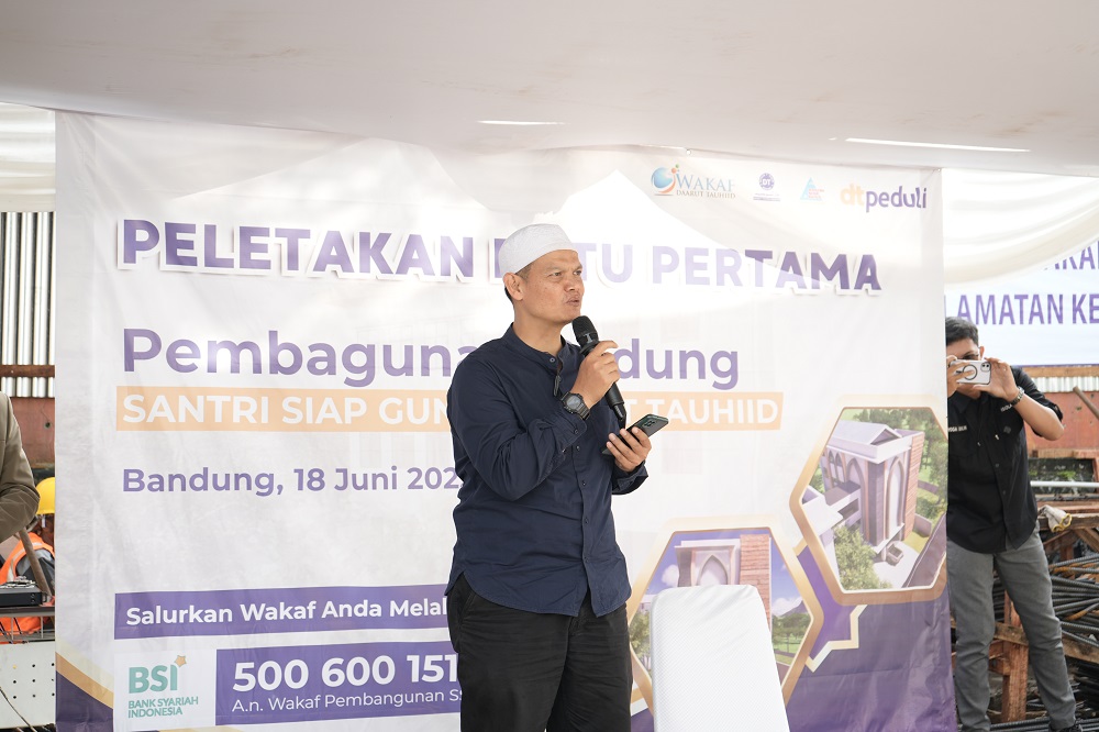 “Alhamdulillah, kita patut bersyukur ditakdirkan oleh Allah SWT menjadi bagian terbangunnya Gedung SSG ini. Semoga kebaikan yang ada di gedung ini, pahala jariyah mengalir kepada kita semua,” ujar Dr. Muhammad Iskandar, S.I.P., M.M., Ketua Yayasan Daarut Tauhiid Peduli, dalam sambutannya saat peletakan batu pertama Gedung Santri Siap Guna (SSG) Daarut Tauhiid pada Rabu pagi, 18 Juni 2025.