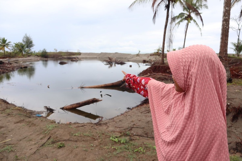 Dari tiga rumah yang dulu berjejer di lingkungannya, kini rata dengan tanah. Hanya lumpur yang menjadi saksi bisu betapa ganasnya banjir bandang Aceh kala itu.